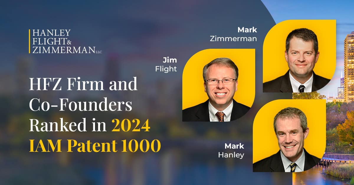 Hanley Flight & Zimmerman as well as firm co-founders Mark Hanley, James Flight, and Mark Zimmerman are once again ranked in the IAM Patent 1000, an annual guide to the world’s leading patent law firms and individuals.