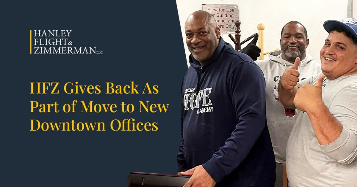 Hanley Flight & Zimmerman, LLC Blog Post News Article Social Media Sharing Image HFZ Gives Back As Part of Move to New Downtown Offices